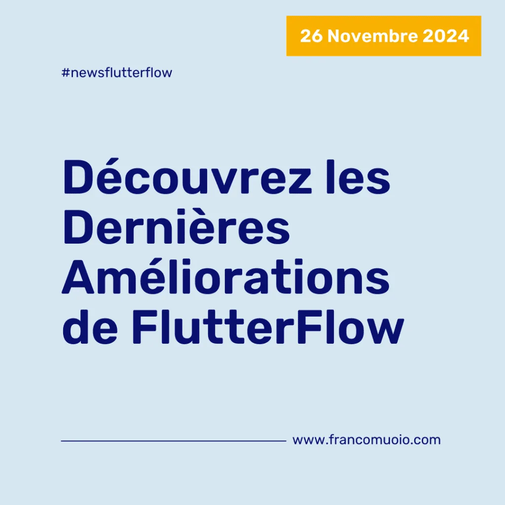 Hello ! Merci de visiter mon site ! Je suis Franco MUOIO Développeur et Formateur en développement mobile. Voici la synthèse des améliorations FlutterFlow du 26 novembre 2024.
